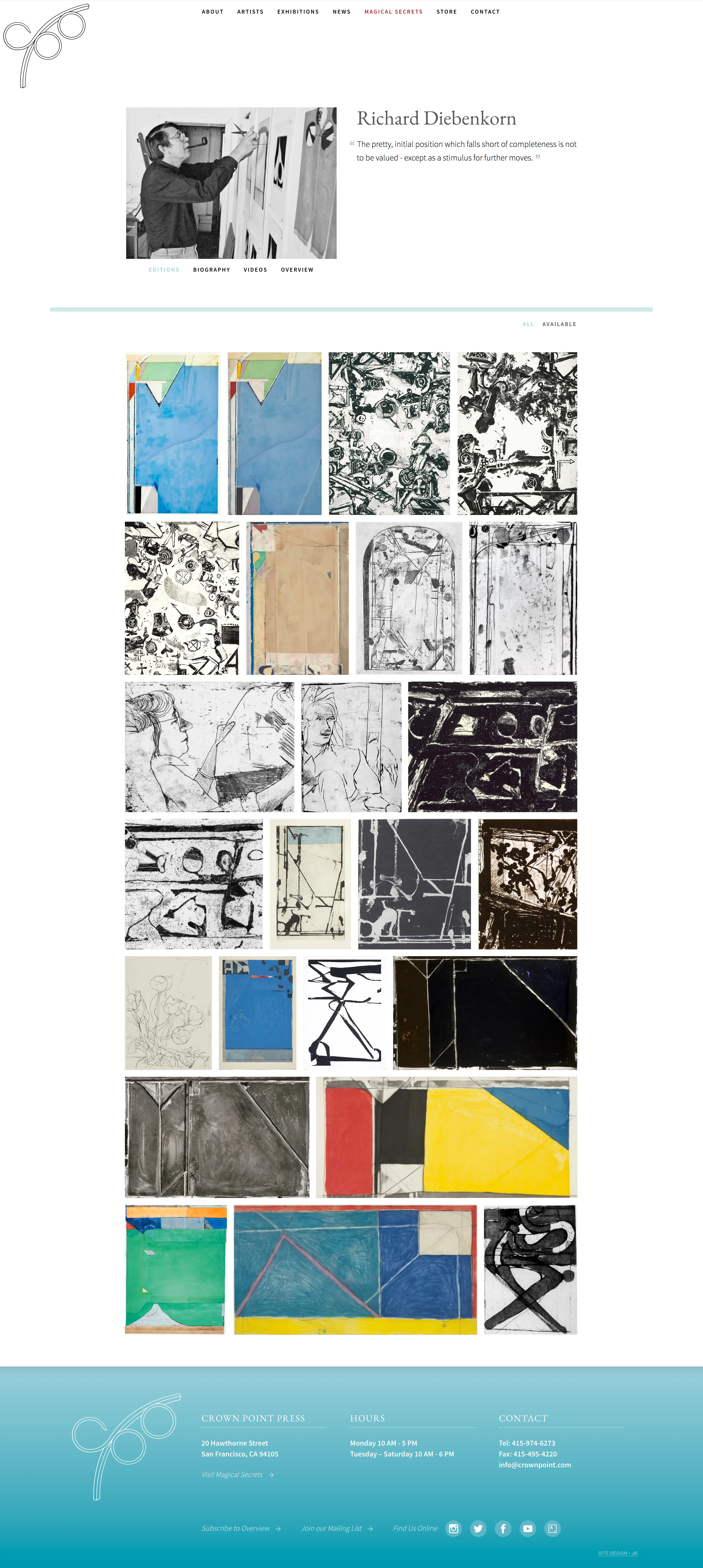 Crown Point Press is a printmaking workshop in San Francisco. Primarily creating and publishing etched, intaglio prints. They have a large roster of over 100 artists who have published prints.